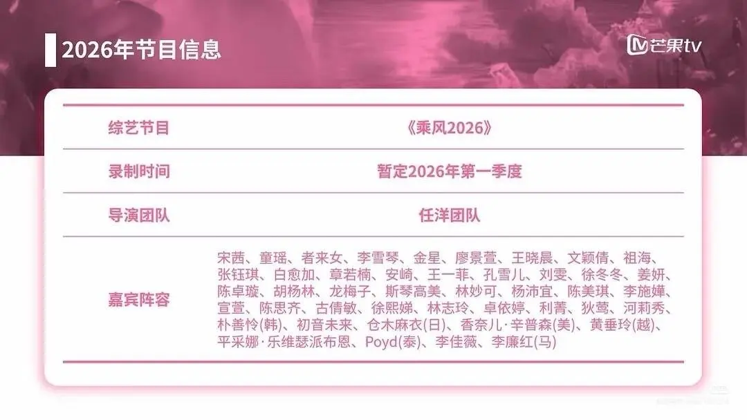 我们可以发现,《浪姐》确实有让姐姐们“翻红”的可能,所以大家都非常关注《乘风2026》。前不久,网上传出《乘风2026》的录制名单,接下来,我们一起看一看: